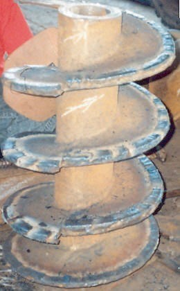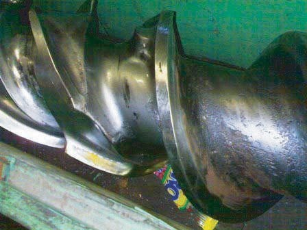 Hiện thượng: Cánh và trục của vít tải bị mòn nghiêm trọng do bị mài mòn của xi măng và than mịn là giảm đáng kể hiệu suất làm việc của vít tải.